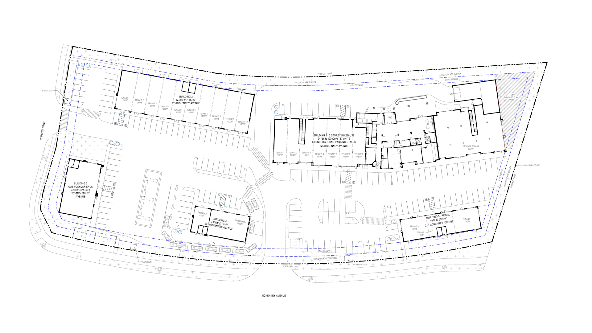 The commercial development is zoned C2 (General Commercial), which accommodates a range of retail, office, daycare uses.