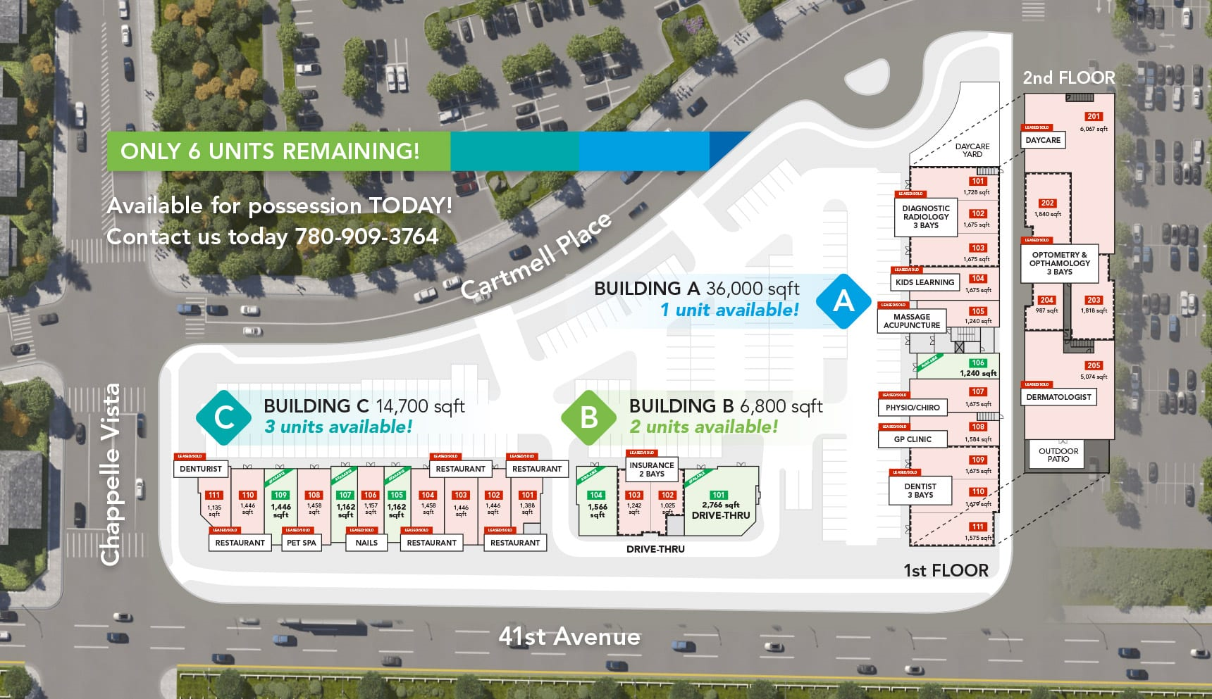 With over 57,000 sqft of space and approx. 200 public parking stalls located right beside 41st Avenue, it will be ready to serve as a hub for all of your business and retail needs.